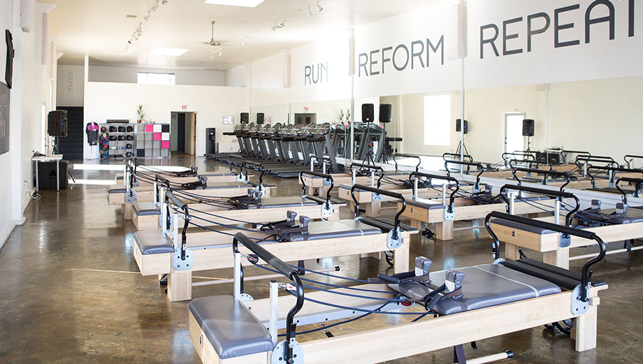 25 minutes of Cardio Intervals on treadmills. Raises your heart rate, taxes your cardio-vascular system, gets you real sweaty and burns calories. Then hop on our customized Reformers for 30 minutes of Endurance Pilates.
